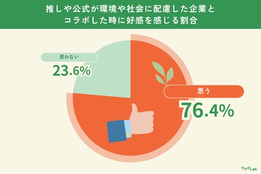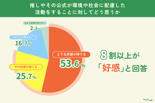 推しやその公式が、環境や社会に配慮した取り組みをしていたら「好感が持てる」と回答したZ世代は約8割に達しました。
