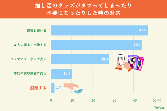不要になった推しグッズを「廃棄する」と回答したZ世代はわずか1.7%でした。