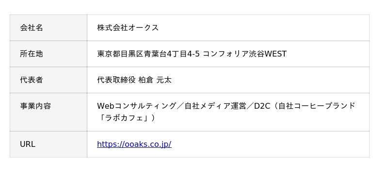 - 株式会社オークス 広報担当- E-mail:info@ooaks.co.jp
