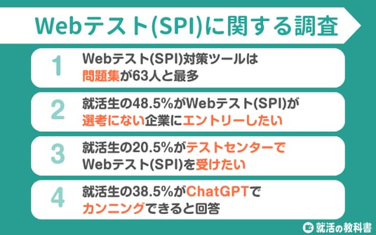 1、Webテスト(SPI)対策ツールは問題集が63人と最多