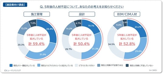 ●59.4%が施工管理職は「5年後さらに人材不足が拡大」と予測