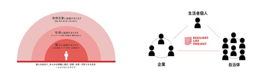 生活者個人を起点にあらゆる困難を乗り越えるためのレジリエンスを日常生活から高めることは、生活者の意識向上による自助と、生活者の集合体である自治体や企業における共助の力を高め、結果として自然災害に対する対応力の底上げにもつながると考えています。
