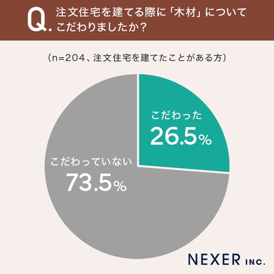 実際に26.5%の方が、注文住宅を建てる際に使用する木材をこだわったと回答しました。