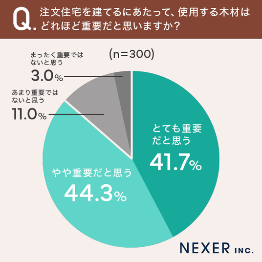 さらに注文住宅を建てるにあたって、使用する木材はどれほど重要だと思うかを調査しました。