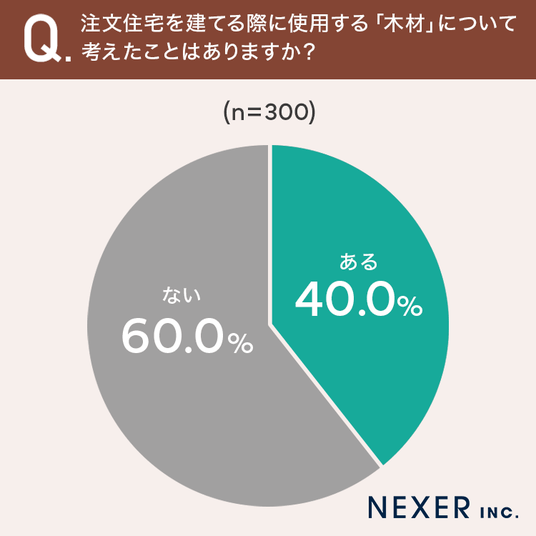 40%の方が、注文住宅を建てる際に使用する木材について「考えたことがある」と回答しました。