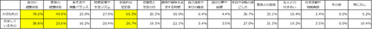 一方で、各項目の「大切なもの」と「充足しているもの」として挙げれた割合を比較すると、「自分の健康状態」で39.2%pt、「金銭的な安定感」で38.6%pt、「家族の健康状態」で24.3%pt、「充足しているもの」とした数値が低く、健康面と家計面で希望と実態に大きな差がみられることが分かった。