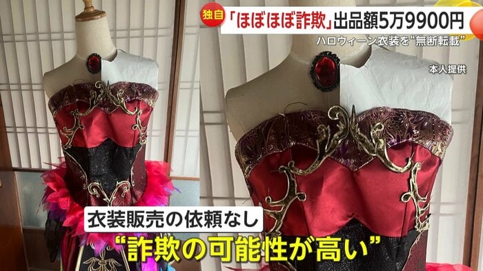 この衣装は5万9900円で出品されているが、衣装を作った女性は販売を依頼したことはなく、「詐欺の可能性が高い」と訴えている。