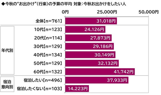 今秋のお出かけ予算は平均3.1万円、60代は4.2万円