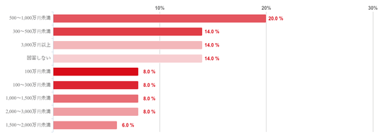また、これに「300~500万円未満」と「3,000万円以上」が14.0%と同率で続いた。