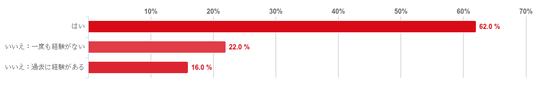 「現在、資産運用を行っている」と回答した人は62.0%となり、「いいえ」と回答した人の中でも「過去に経験がある」と回答した人が16.0%で回答者の約6割が資産運用の経験があることがわかった。