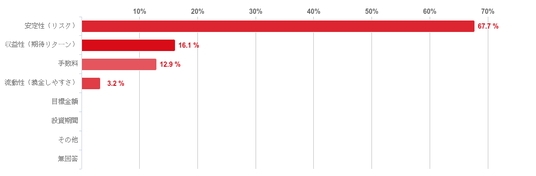 「安定性(リスク)」が67.7%で圧倒的に多く、「収益性(期待リターン)」は16.1%と2割弱となった。