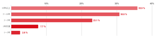 「10年以上」が35.9%と最も多く、「5~10年」(30.8%)「3~5年」(23.1%)と続いた。