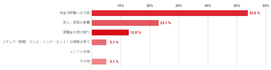 そのほか、「友人・家族の影響」(23.1%)「退職金の受け取り」(12.8%)と続いた。