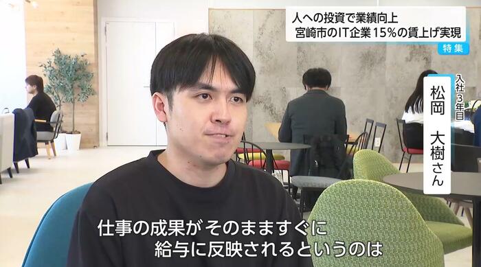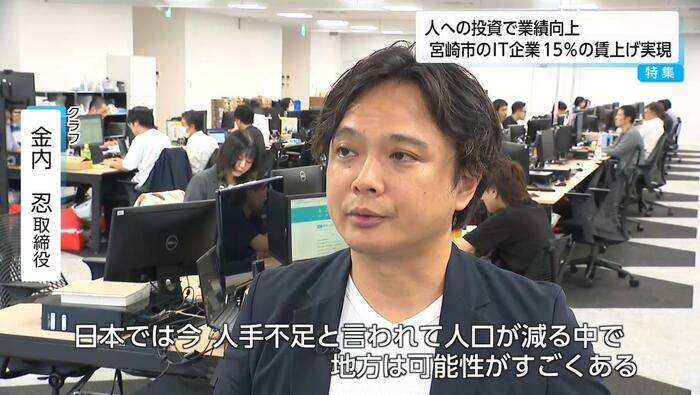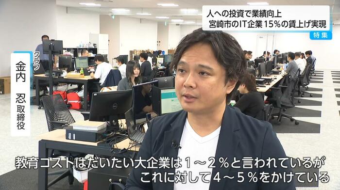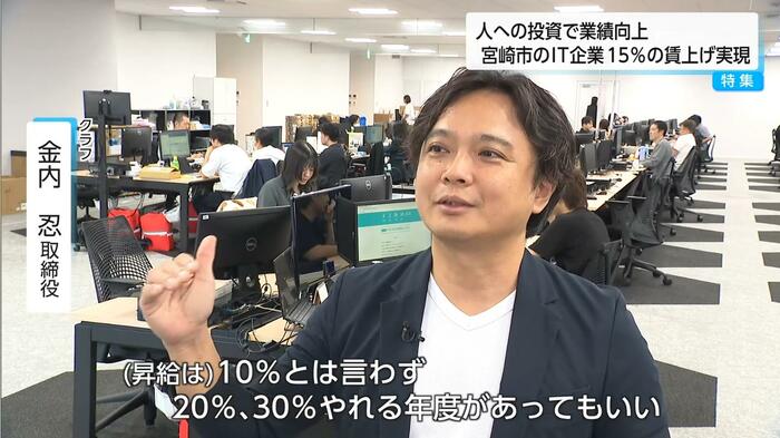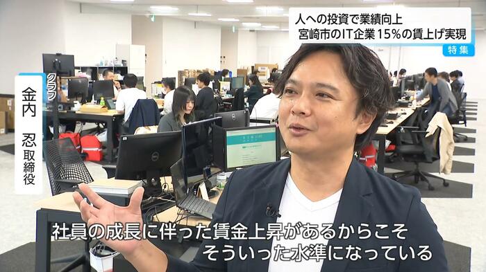 物価高騰が続く中、平均15%という大幅な賃上げを実現したIT企業が宮崎市にある。地方にありながら、首都圏と変わらない給与水準を実現しているという。「賃上げ=コスト」ではなく「社員の成長が会社の成長」と掲げ、「人への投資」を理念に掲げる戦略に迫る。