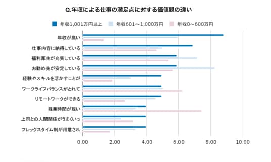 - 年収で変わる働き方の傾向 ― 高年収はキャリア成長、中低年収は快適な環境を重視