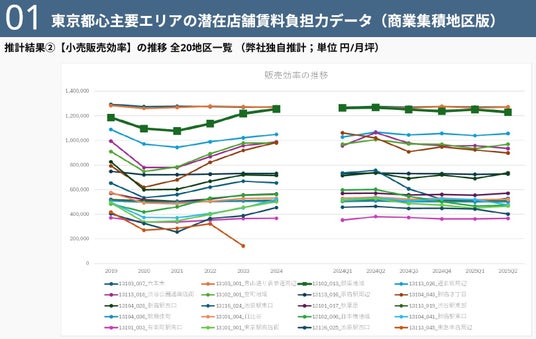 商業用不動産仲介事業を専門で取り扱っている株式会社ゼン・ランド(本社:東京都渋谷区、代表取締役社長 藤井善英、以下「当社」)は、商業店舗の収益性や賃料負担力の動向を追う指標として、経済センサスの「商業集積地区」をベースとした、東京都心商業エリアの潜在店舗賃料負担力データの2025年第2四半期版を公開いたします。