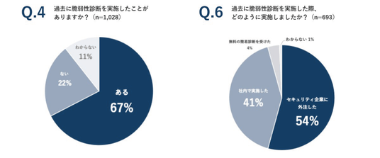また、そのうちの半数以上となる54%の企業では、診断をセキュリティベンダーに外注しており、専門家の活用により、診断精度の向上や自社リソース不足の解消を図っていることがうかがえます。