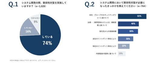 システム開発時に『脆弱性対策を実施している』と回答した企業は74%という結果となりました。