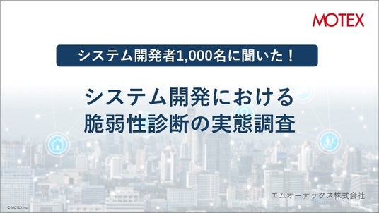 エムオーテックス株式会社(本社:大阪市淀川区、代表取締役社長:徳毛 博幸、以下MOTEX)は、システム開発者 約1,000名を対象に実施した「システム開発における脆弱性診断の実態調査」を実施し、その結果を発表しました。