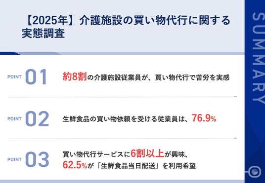 - 01|約8割の介護施設従業員が、買い物代行で苦労を実感