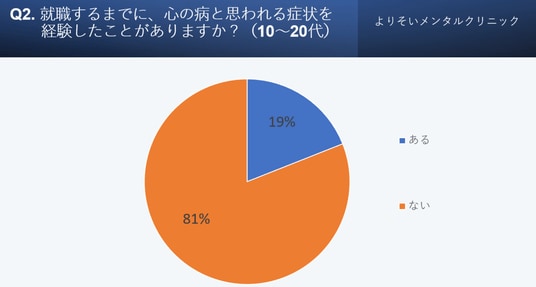 ■10~20代のうち、就職するまでに心の病の症状を経験したことがある人は19%