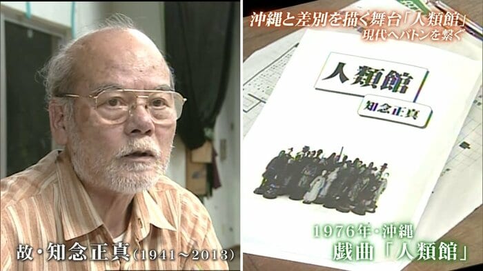 「戯曲人類館」を1976年に制作した劇作家・知念正真氏(1941-2013)が語った言葉だ。知念氏は人類館事件をはじめ、沖縄戦や本土復帰など沖縄の近現代史を盛り込んだ作品を発表した。「なぜ人は差別するのか?」という問いかけを根底に据えた本作は、1978年に岸田戯曲賞を受賞。人間の心の闇を覗くようなこの舞台は大きな関心を集め、半世紀近くにわたって何度も上演されてきた。