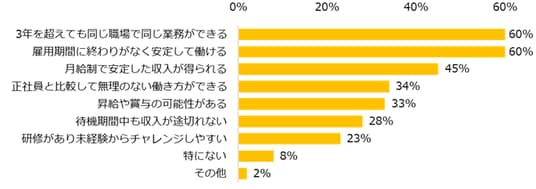 ・契約期間の定めがないことで仕事の熟練度が上がる。(30代女性)