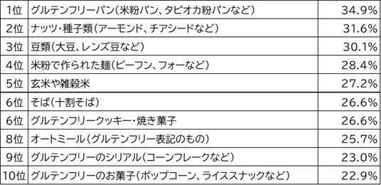 グルテンフリーの食生活を実施する有名アスリートや美容・健康意識の高い方々の発信や店頭での商品展開の影響か、認知は高いことがわかります。