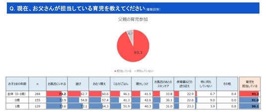 ~ 育児に参加している父親は93.3%、お風呂を担当しているが最多 ~