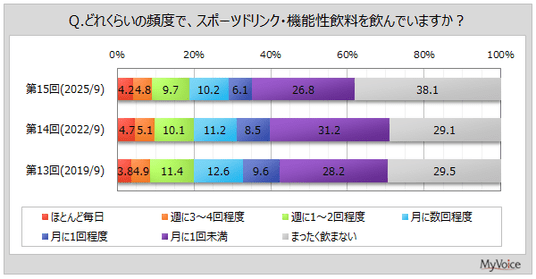 マイボイスコム株式会社(東京都千代田区、代表取締役社長:高井和久)は、15回目となる『スポーツドリンク・機能性飲料の利用』に関するインターネット調査を2025年9月1日~7日に実施しました。