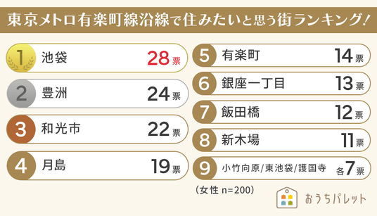 おうちパレット・女性が選ぶ東京メトロ有楽町線の住みたい街に関する調査