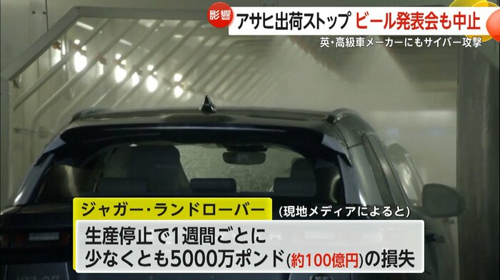 ジャガー・ランドローバーは、部品メーカーなどを含めると15万人以上の従業員がいて、現地メディアは、生産停止によって1週間ごとに少なくとも5000万ポンド(約100億円)の損失が出ていると報じている。