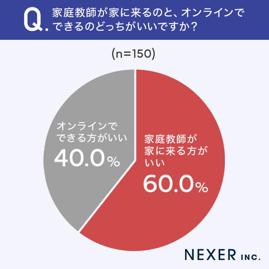 「家庭教師が家に来る方がいい」と回答した方が6割を占めましたが、「オンラインでできる方がいい」という方も4割いました。