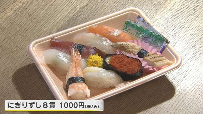 さまざまなネタが、8貫入ったにぎり寿司の値段は1000円。食べた記者によると、シャリが冷蔵されていたはずなのに、全く固まっていないという。「口の中でシャリがほどけていきます」というのだ。