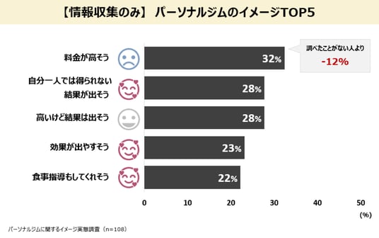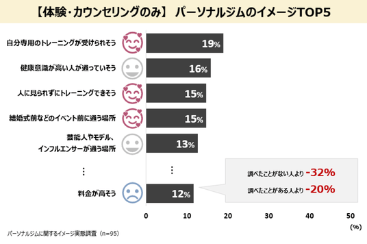 興味はあるけれどまだ情報収集していない人、情報収集をしてみた人、実際に店舗に足を運んだ人…。関心度や行動の段階によって、パーソナルジムへのイメージはどのように変わるのかを調査したところ、思わぬ傾向が明らかになりました。