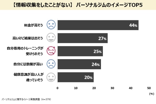テレビCMやSNSの広告でよく見る劇的なビフォーアフターや、テレビの特集・SNSで発信される特別な人だけが受けているトレーニングの様子が、かえって「自分には無理かもしれない」という思い込みを生んでいる可能性があります。こうした先入観が心理的な壁となり、行動を妨げているようです。