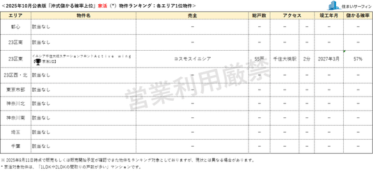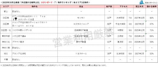 10月公表分は、2025年9月11日時点で販売もしくは販売予定が確認できた物件を対象としています。