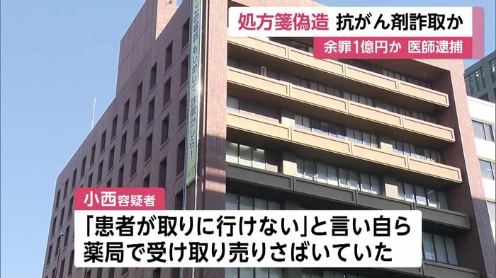 処方せんを偽造し、400万円相当の抗がん剤などをだまし取った疑いで、医師の男が逮捕された。