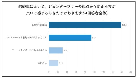 結婚式において、ジェンダーフリーの観点から変えた方が良いと感じるしきたりはありますか(回答者全体)