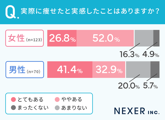 一方で、実際に痩せたと実感していない方も2割程度いることが分かります。
