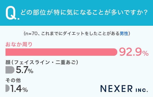 男性は、92.9%の方が「おなか周り」と回答しています。