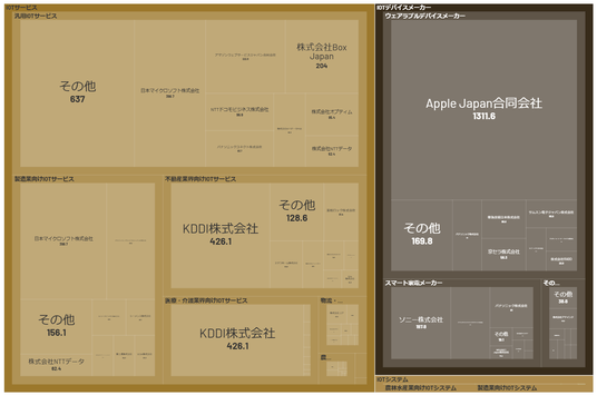「IoT業界カオスマップ」では、国内の主要企業705社を以下の16分野に分類して掲載しています。
