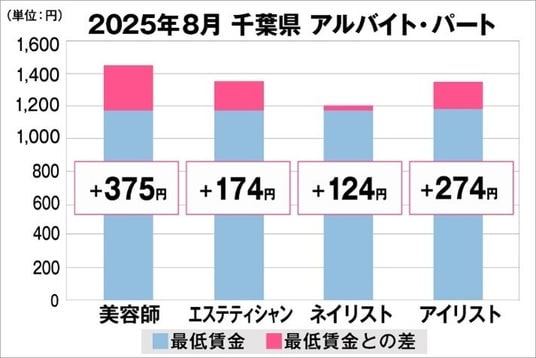 千葉県の美容業界における採用時給料に関する調査結果(アルバイト・パート)2025年8月美プロ調べ