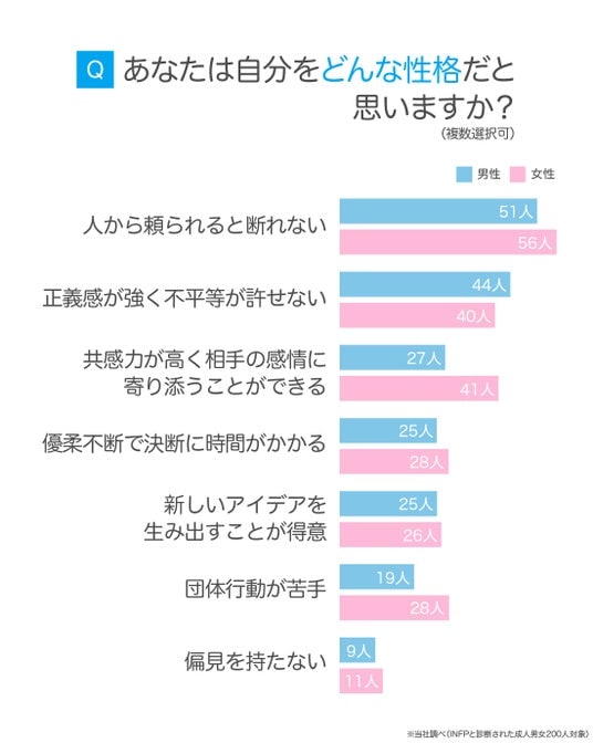 調査対象:MBTIテストで「INFP」と診断された成人男性・成人女性
