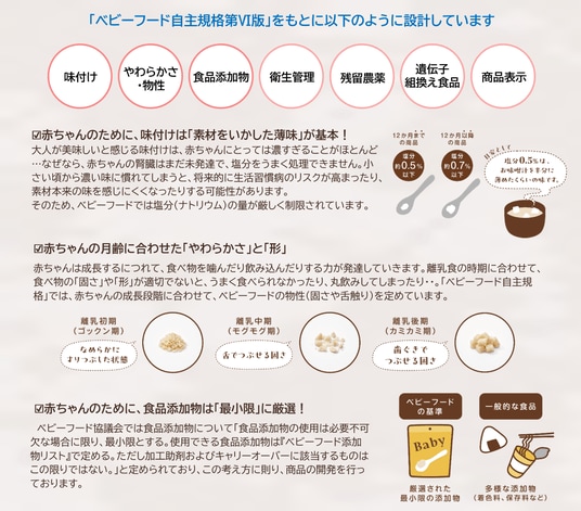 実はベビーフードには、国の基準に加えて、より厳しいベビーフード協議会で定めた「ベビーフード自主規格」が存在します。