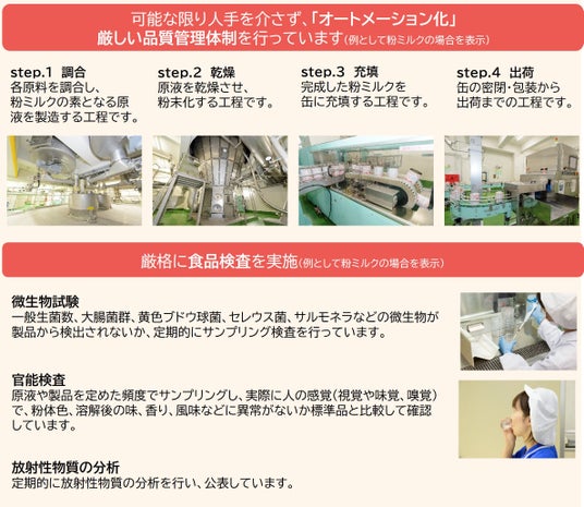 「ずっと、赤ちゃん品質。」をブランドメッセージとし、粉ミルクやベビーフード、プレキッズフード、乳幼児向けのおやつ・飲料、乳幼児向けスキンケア、乳幼児向け医薬品、妊産婦向け食品などを展開しています。ベビーフードなどの食品では、お子さまの成長段階に合わせた味付け、具材の大きさ、固さ、量、素材のおいしさにこだわった安全・安心な商品を提供し、お子さまの成長をサポートするとともに、養育者の育児負担軽減に貢献することを目指しています。