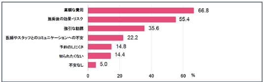 一方で、半数以上は「高額な費用」や「施術後の効果やリスク」に不安を感じており、実際に利用した人の3割はトラブルや不満を感じていることが浮き彫りになりました。