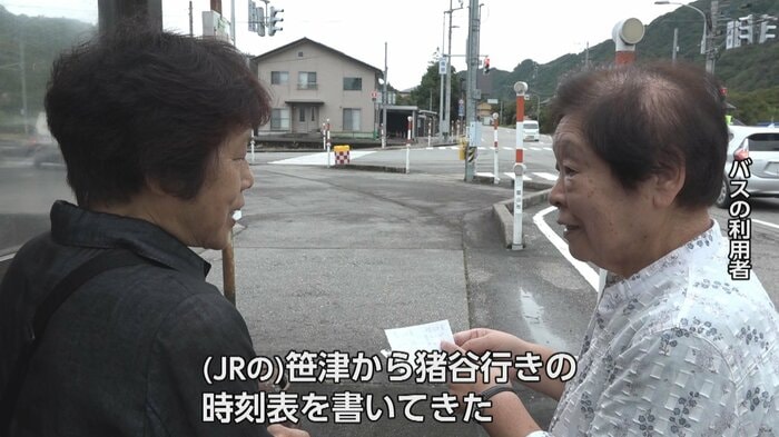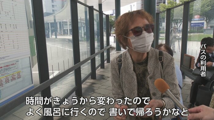 バス利用者からは「春日温泉に行く時間が今日から変わったので書いて帰ろうと思って。帰ってくる時間が遅いのが心配」「仕方ない。運転手がいないというのだから」といった声が聞かれた。