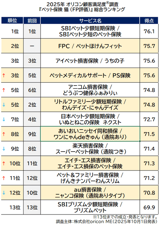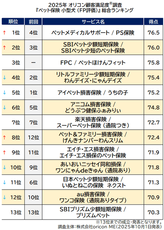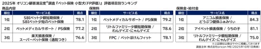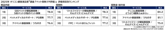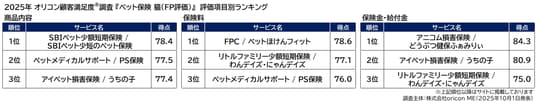 2025年10月発表 オリコン顧客満足度(R)調査 ペット保険(FP評価)/ペット保険 小型犬(FP評価)/ペット保険 猫(FP評価)