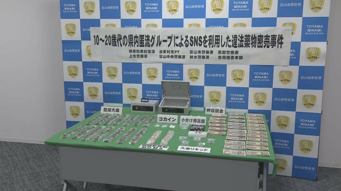 逮捕されたのは、富山市の無職、小沢亜瑠容疑者(21)ら16歳から21歳までの男4人だ。警察は男らが使用していたとみられる富山市の倉庫などから、大麻やMDMA、コカインや覚せい剤などおよそ200点を押収した。